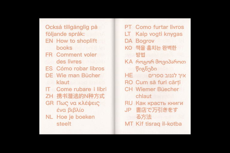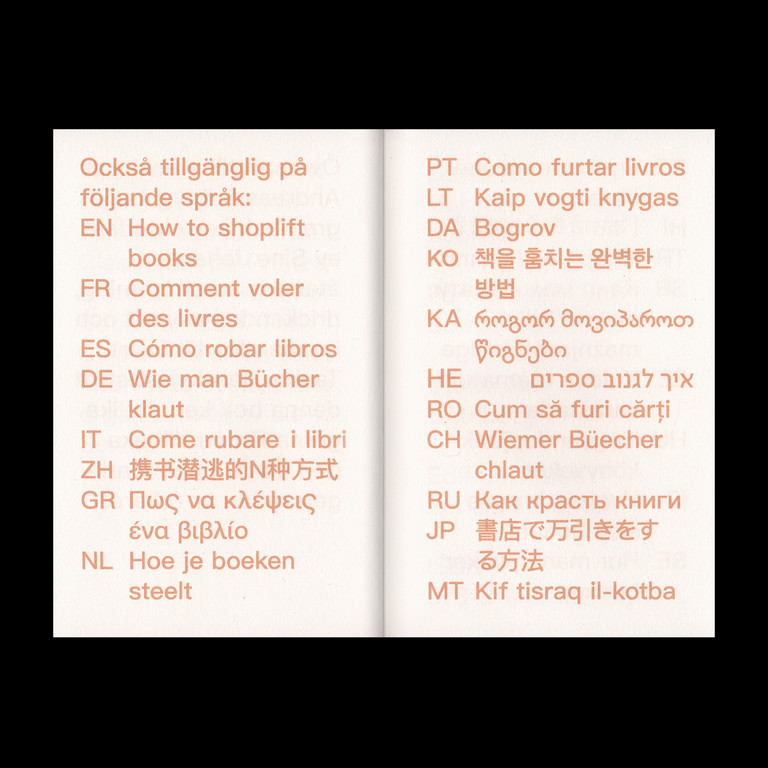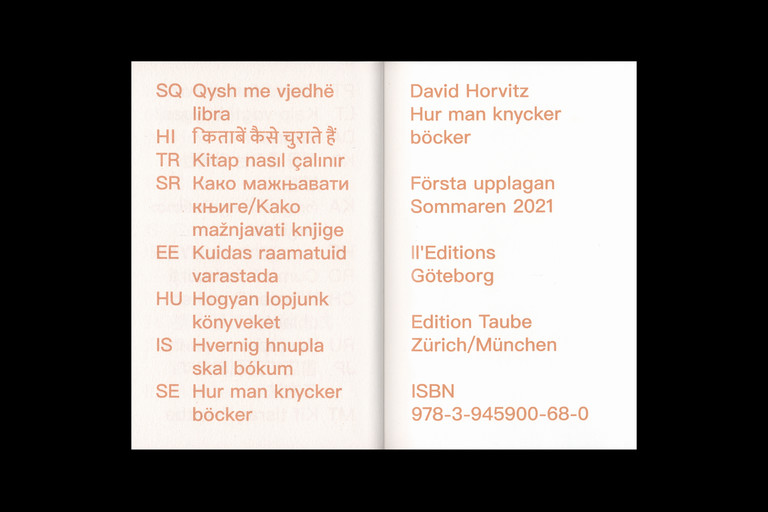 In 2022, LL’Editions and Edition Taube co-published a Swedish language edition of David Horvitz’ infamous artist’s book ‘How to Shoplift Books‘. The book was translated by Andreas Friberg Lundgren and titled ‘Hur man knycker böcker’.